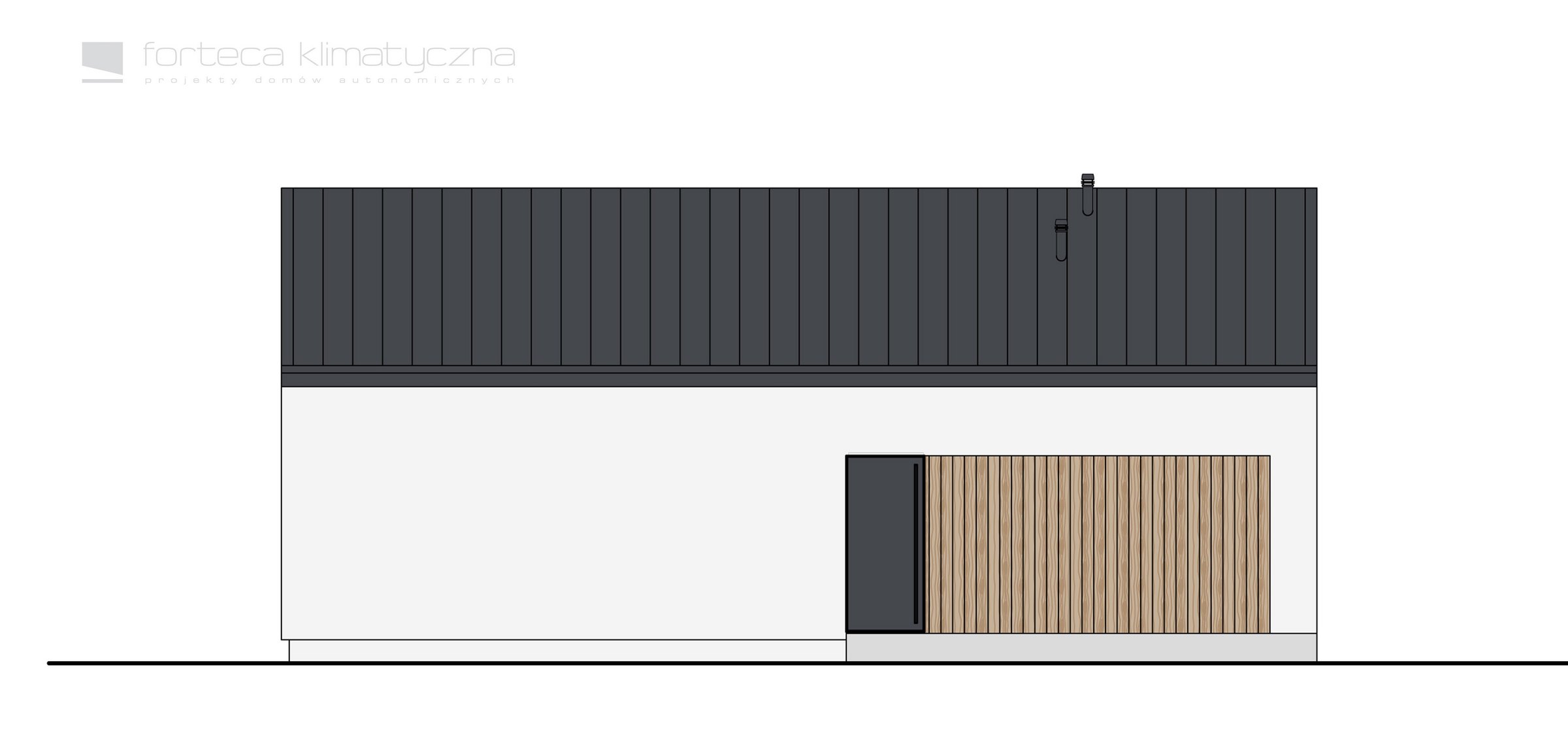 Ponadczasowa, klasyczna forma. Układ brył odzwierciedla funkcje wewnętrzne. Izolowany od przestrzeni publicznej, ale otwarty na zieleń. Zaprojektowana tarasola idealnie komponuje się z przydomowym ogrodem. Dom częściowo okładany drewnem z recyklingu, które nie wymaga konserwacji i stanowi znacznie bardziej interesujące kolorystycznie rozwiązanie, wpisując się zarazem w modny , ekologiczny trend gospodarki cyrkularnej.