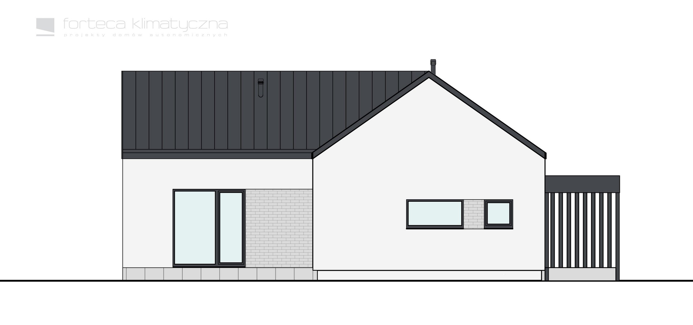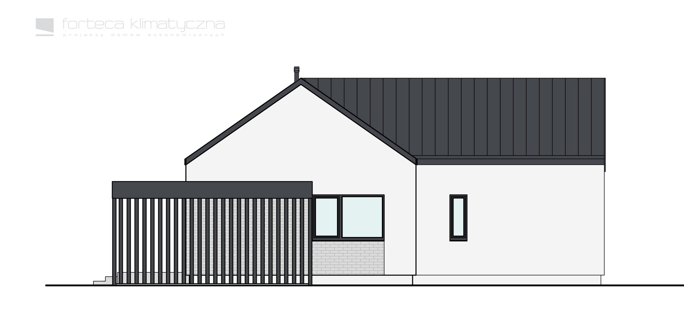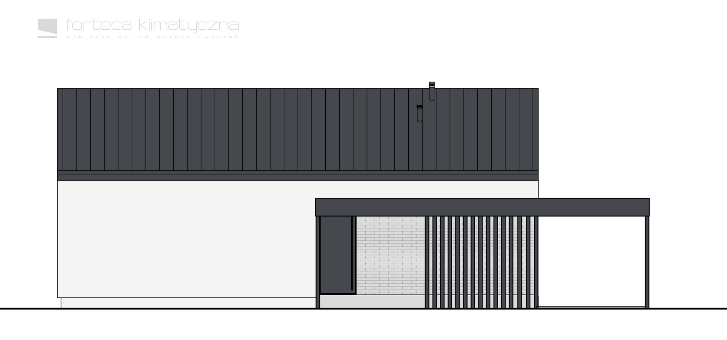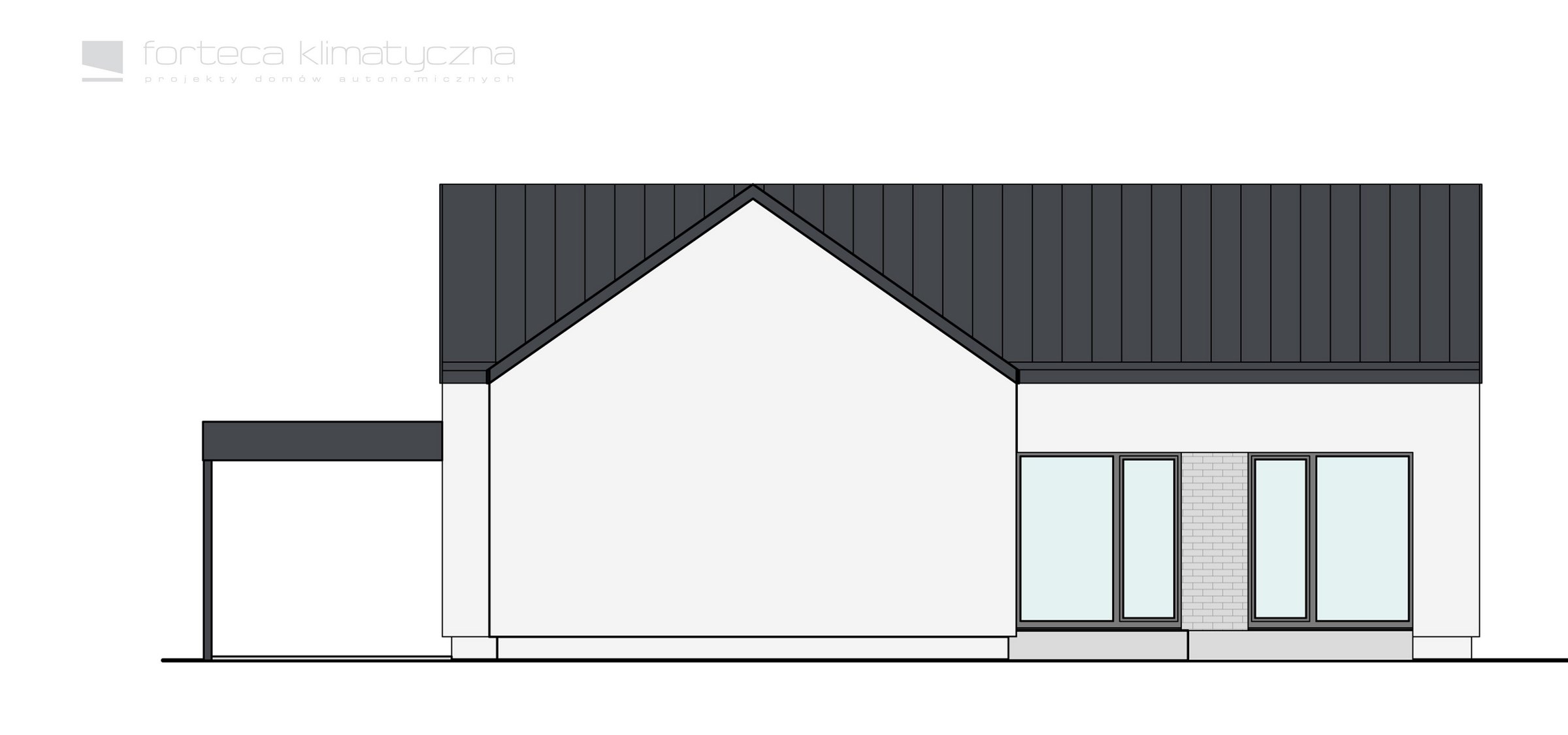Wersja L-line W to mały dom z wiatą garażową i zadaszeniem przed wejściem głównym. W dokumentacji wskazany producent wiaty.