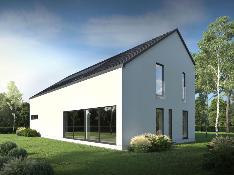 Minimalna wielkość działki dla domu samowystarczalnego – szerokość 17m x długość 55m (gabaryty działki uwzględniają instalacje sanitarne – geotermia, studnia, retencja)